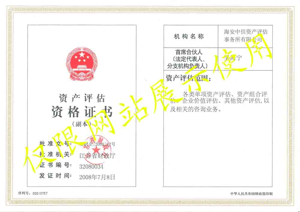 资产评估资格证书