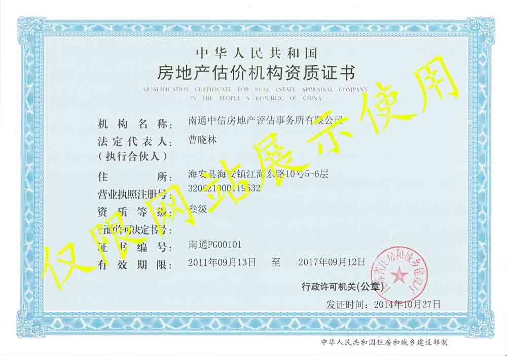 房地产估价资质证书